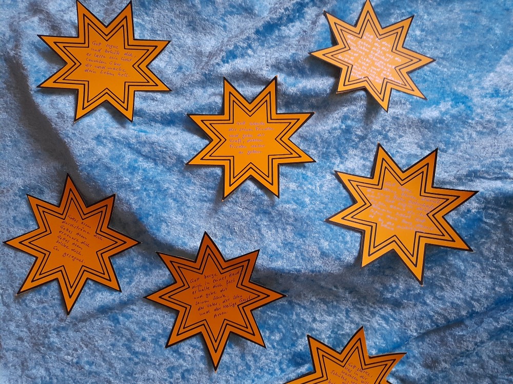 Dabei könnt Ihr bei der AKTION STERNENHIMMEL mitmachen. Gestaltet einen Papierstern mit eurem Segenswunsch für jemanden anderen und legt diesen Stern zur Krippe. Pflückt euch einen anderen Stern - entweder für euch selbst oder bereitet jemand anderen damit Freude.
