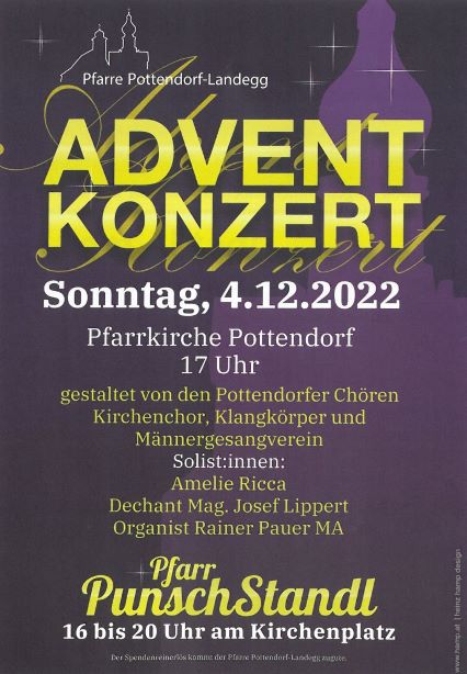 Kommen Sie vorbei, genießen vorher und/oder nachher einen Punsch und lauschen beim Konzert den Darbietungen.