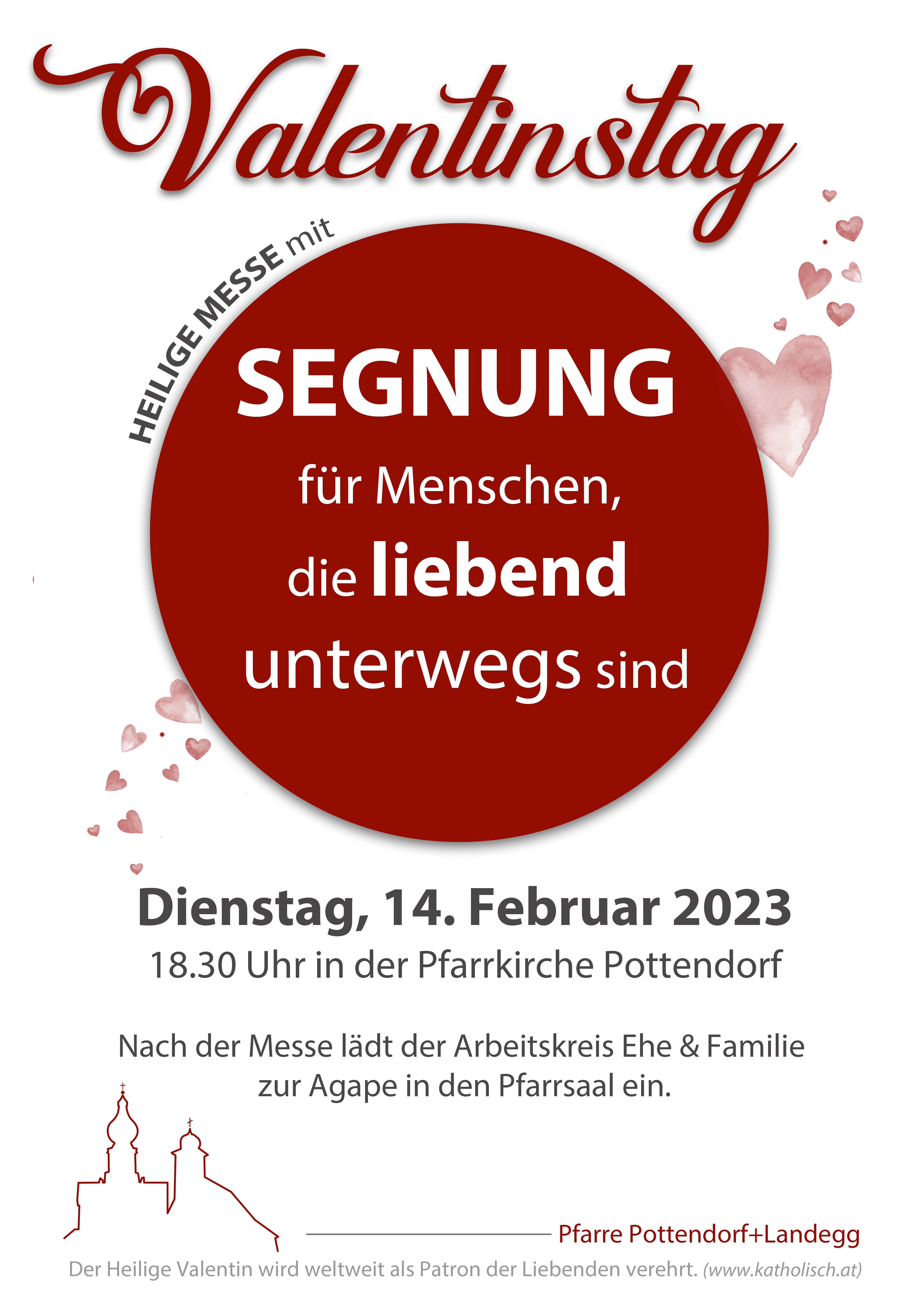 Herzliche Einladung an alle Menschen, die liebend unterwegs sind. Am Ende der Messe spendet unser Herr Pfarrer allen Paaren und Einzelperson einen Segen.