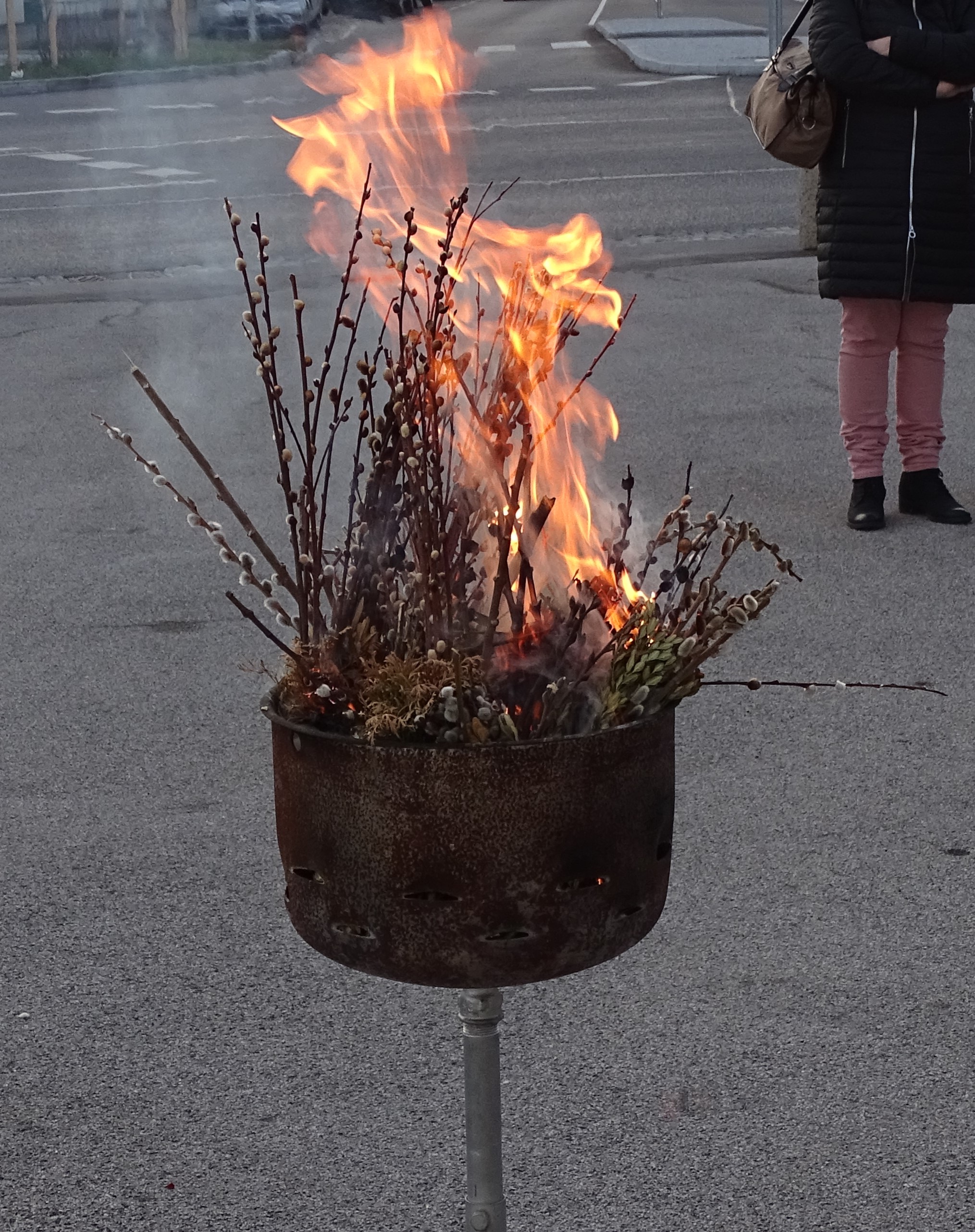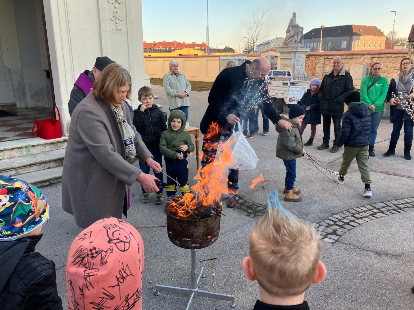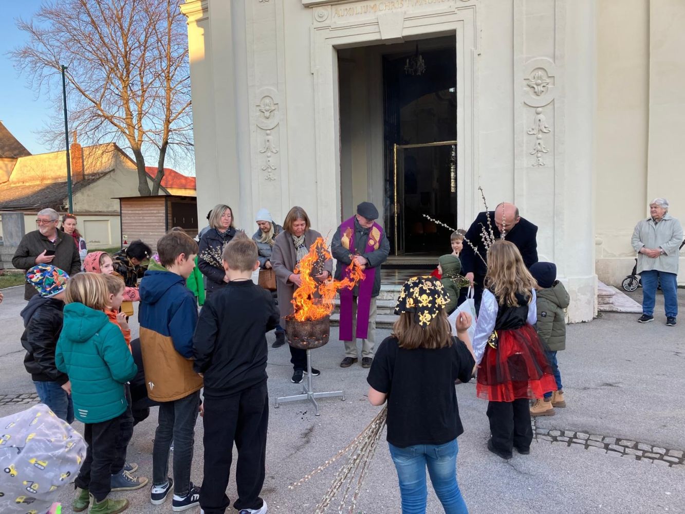 Hier kommen ein paar Bilder von der Aschenkreuzfeier für die Familien vor der Kirche