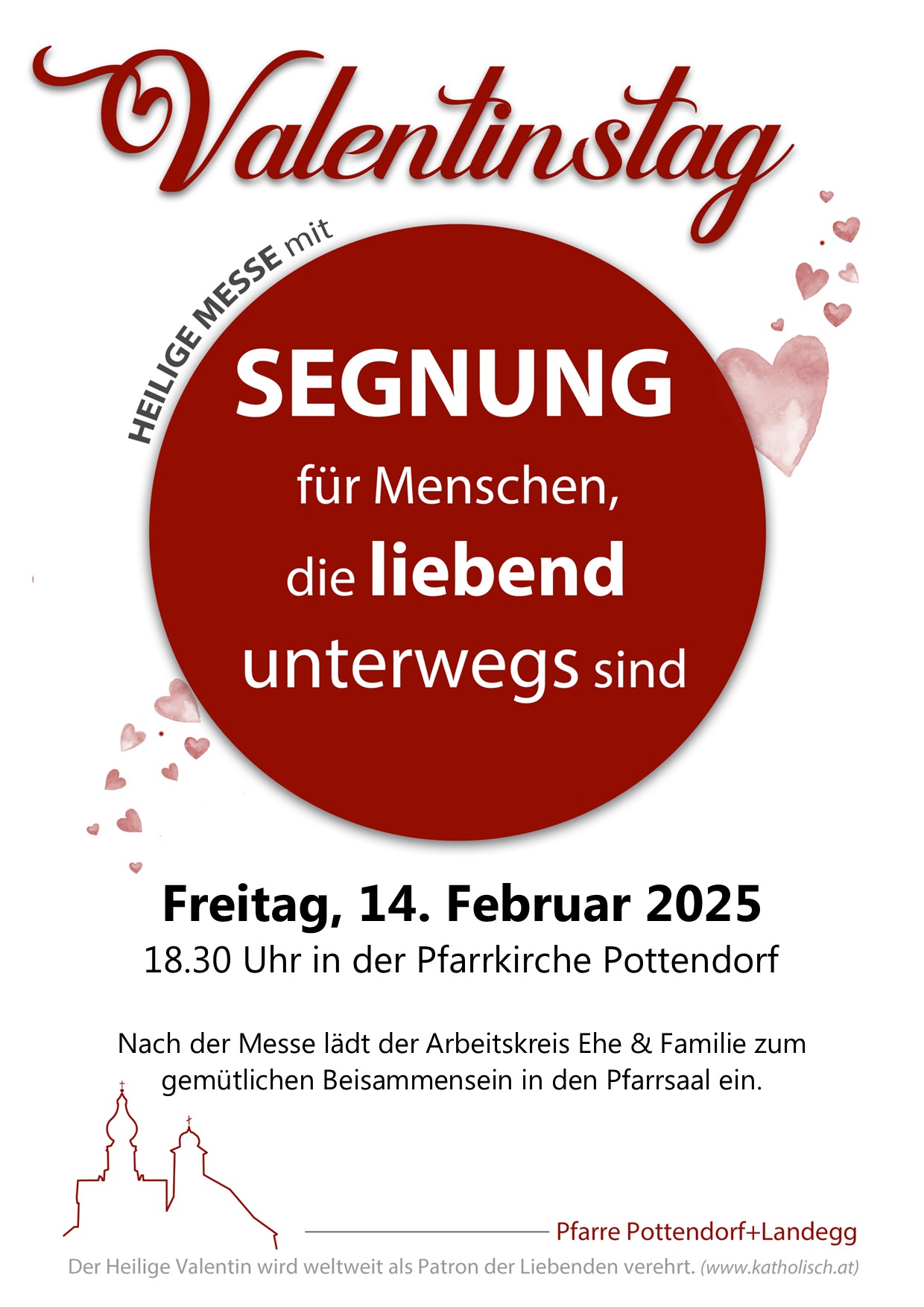 Hl. Messe und Segnung am Valentinstag, den 14. 2. um 18.30 Uhr