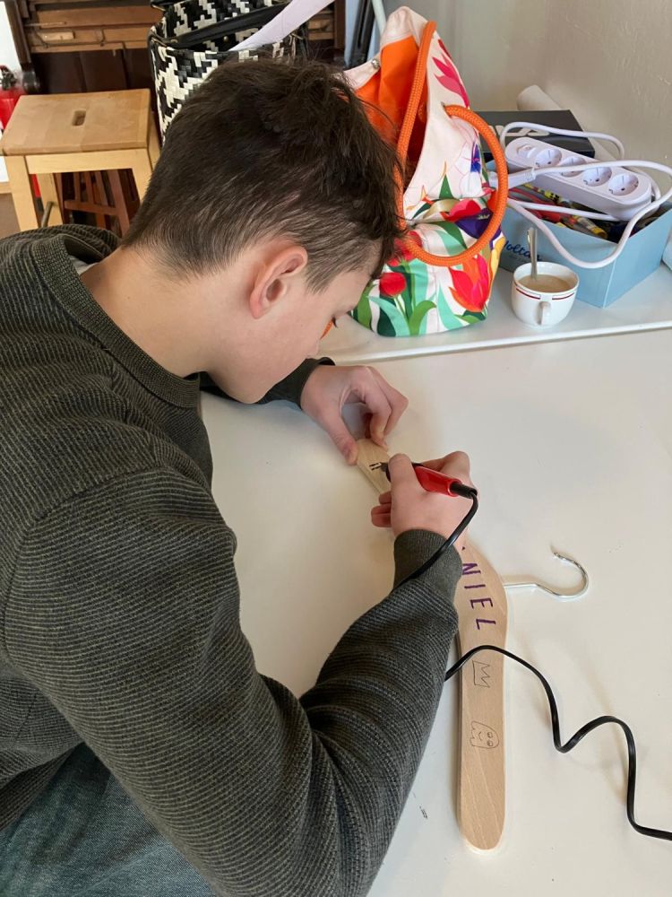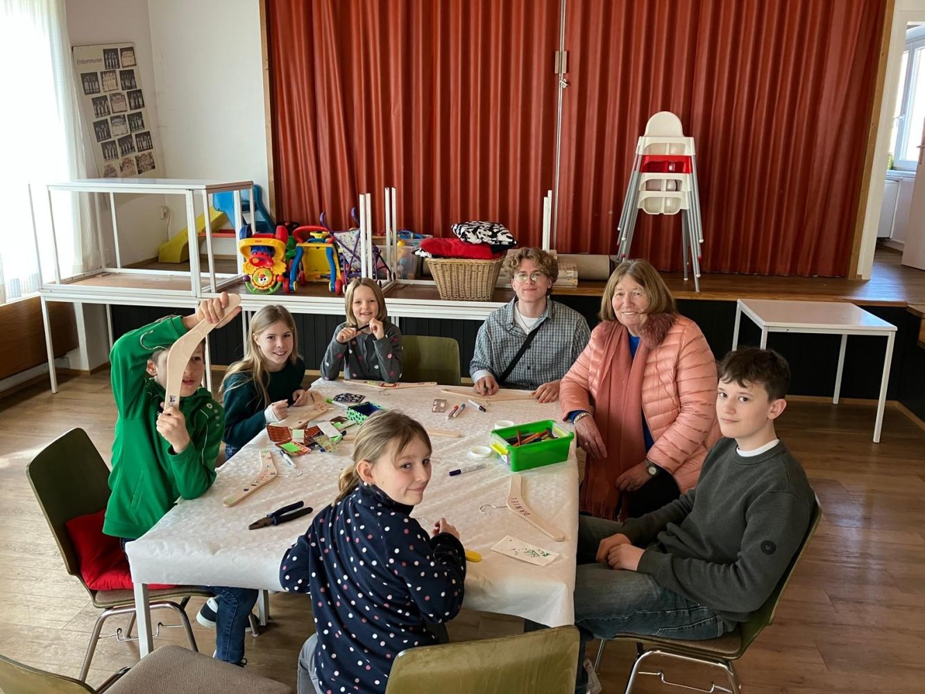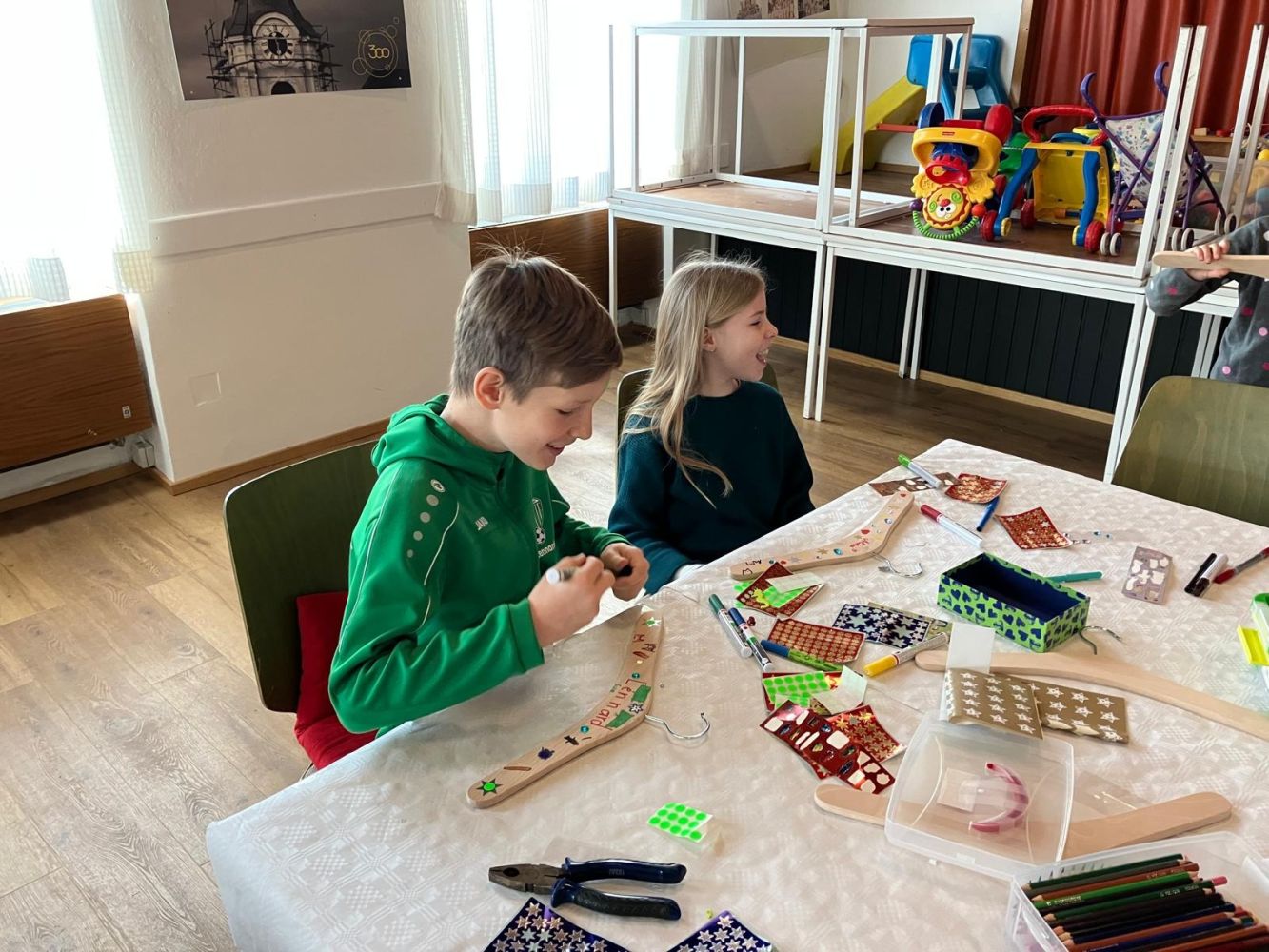 Am Faschingsonntag haben die Minis in der Ministrantenstunde Kleiderhaken für ihre Albe selbst gestalten und waren mit großem Eifer bei der Sache.