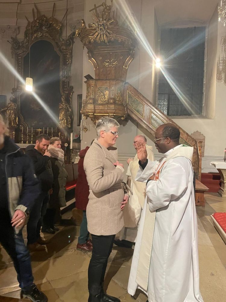Segnen heißt im Lateinischen "benedicere" - übersetzt heißt das "jemanden etwas Gutes zusagen". In der Messe sagt unser Herr Pfarrer allen Paaren und Einzelpersonen etwas Gutes zu - er spendet ihnen Gottes Segen.