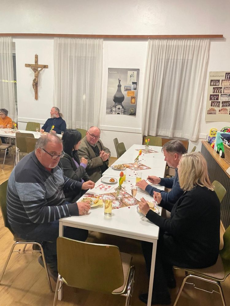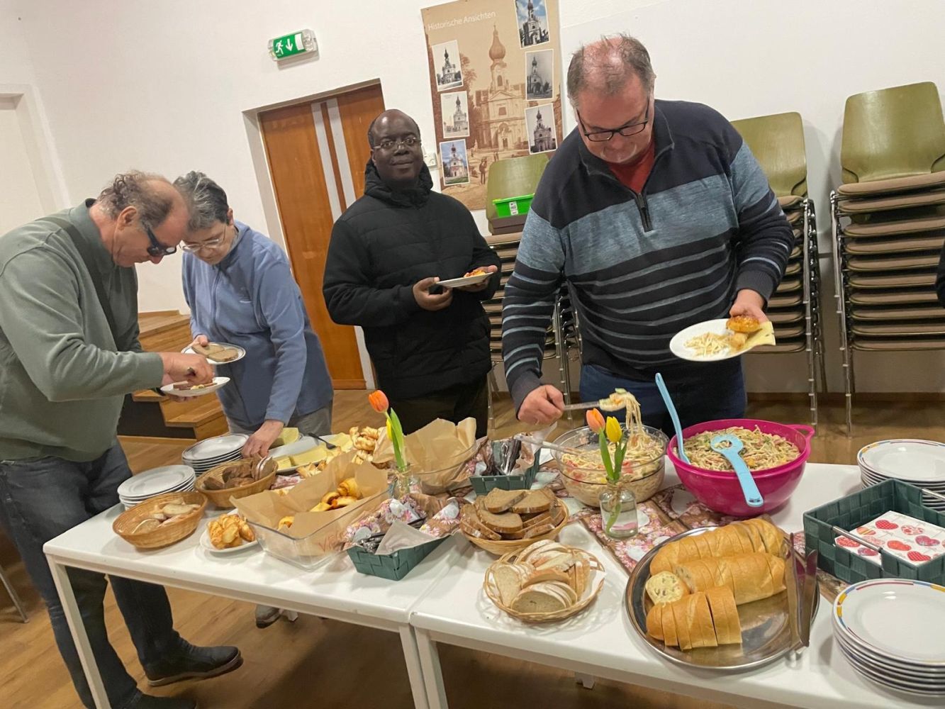 Seit ein paar Jahren lädt die Pfarre ihre ehrenamtlichen Mitarbeiterinnen und Mitarbeiter einmal im Jahr zu einer kleinen Feier in den Saal des Verein Jugendhilfe ein. Wir feiern gemeinsam Eucharistie, sehen einen Rückblick über die vielen Aktivitäten der Pfarre, erfreuen uns an einem köstlichen Büffet und es kommt zu angeregten Gesprächen.
