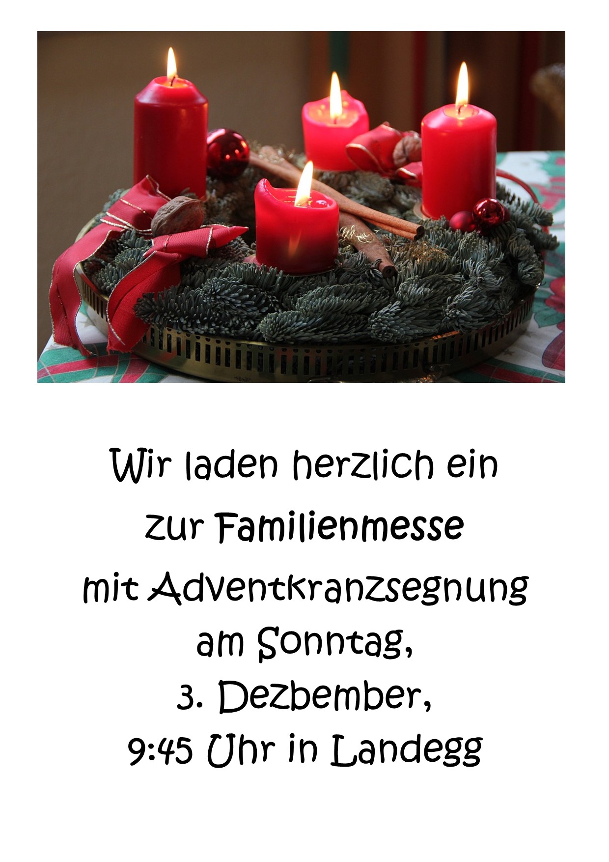 Am Sonntag, dem 3. Dezember feiern wir um 9.45Uhr die Familienmesse