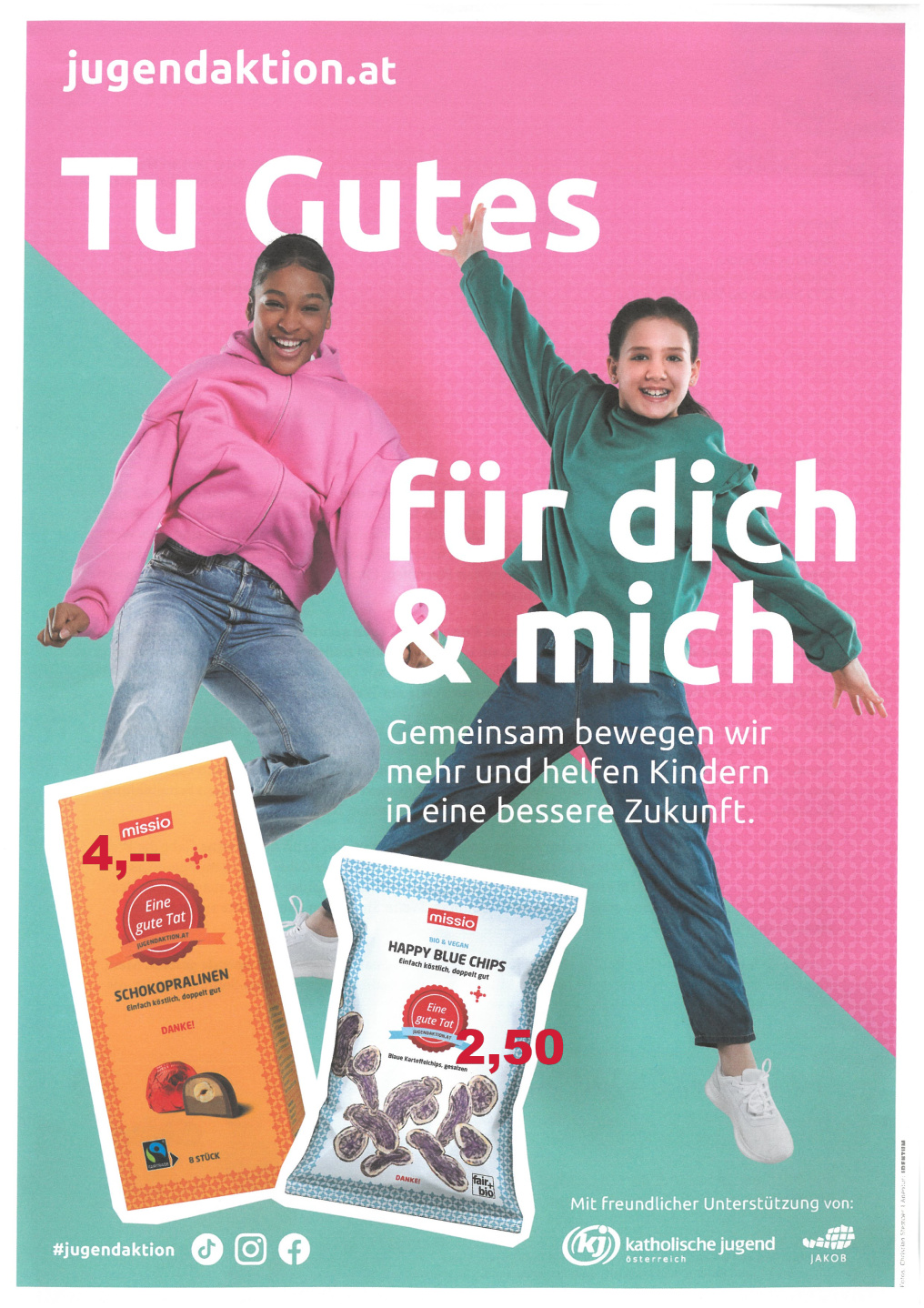 Im Anschluss nach der Hl. Messe werden Schokopralinen um € 4,00 und Chips um € 2,50 pro Packung verkauft.