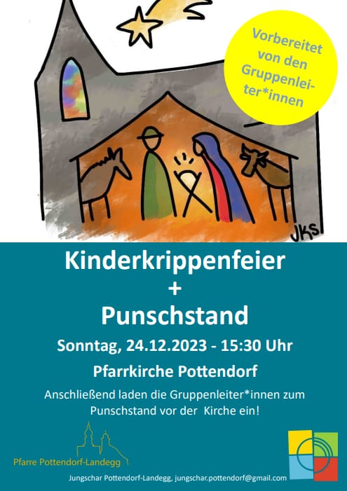 24. Dezember: 15:30 Uhr Pottendorf: Krippenfeier, gestaltet von der Jungschar